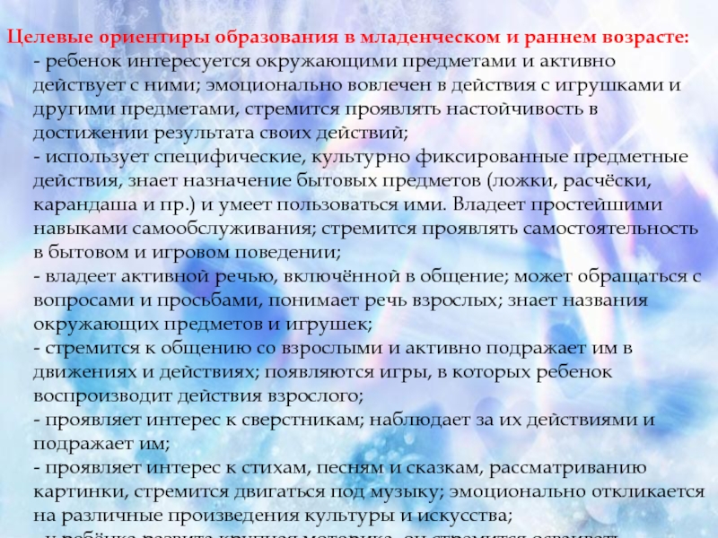 Целевые ориентиры образования в младенческом и раннем возрасте: