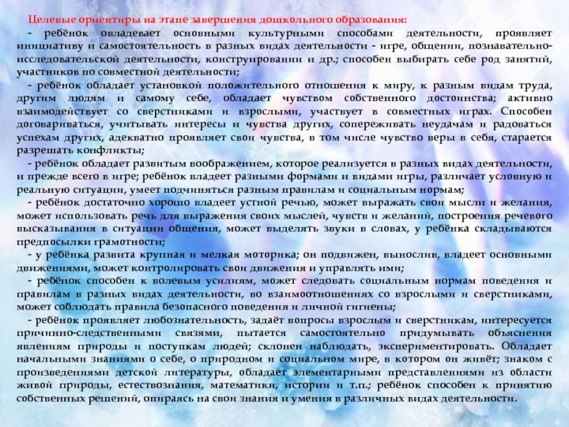 Слайд 14Целевые ориентиры на этапе завершения дошкольного образования: