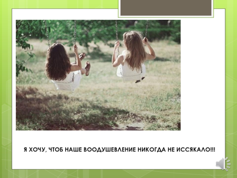 Слайд 23Я ХОЧУ, ЧТОБ НАШЕ ВООДУШЕВЛЕНИЕ НИКОГДА НЕ ИССЯКАЛО!!!