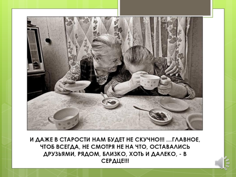 И ДАЖЕ В СТАРОСТИ НАМ БУДЕТ НЕ СКУЧНО!!! …ГЛАВНОЕ, ЧТОБ ВСЕГДА, НЕ СМОТРЯ НЕ НА ЧТО, ОСТАВАЛИСЬ