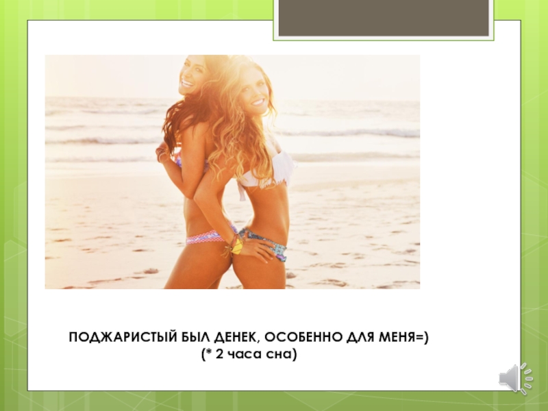 Слайд 12ПОДЖАРИСТЫЙ БЫЛ ДЕНЕК, ОСОБЕННО ДЛЯ МЕНЯ=) (* 2 часа сна)