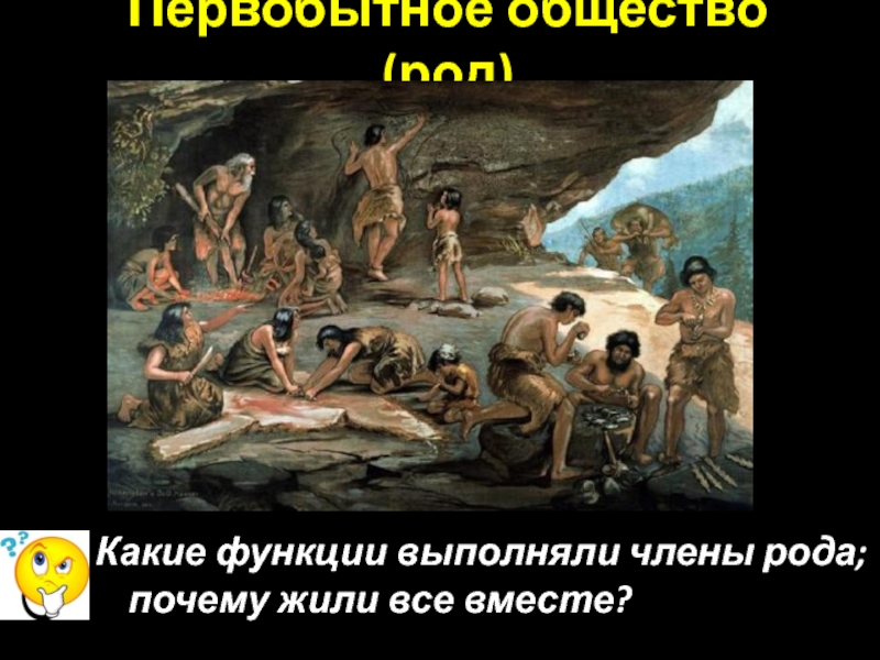 Первобытное общество (род)Какие функции выполняли члены рода; почему жили все вместе?
