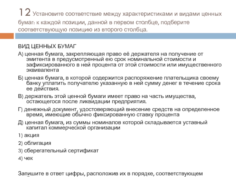 ВИД ЦЕННЫХ БУМАГ
