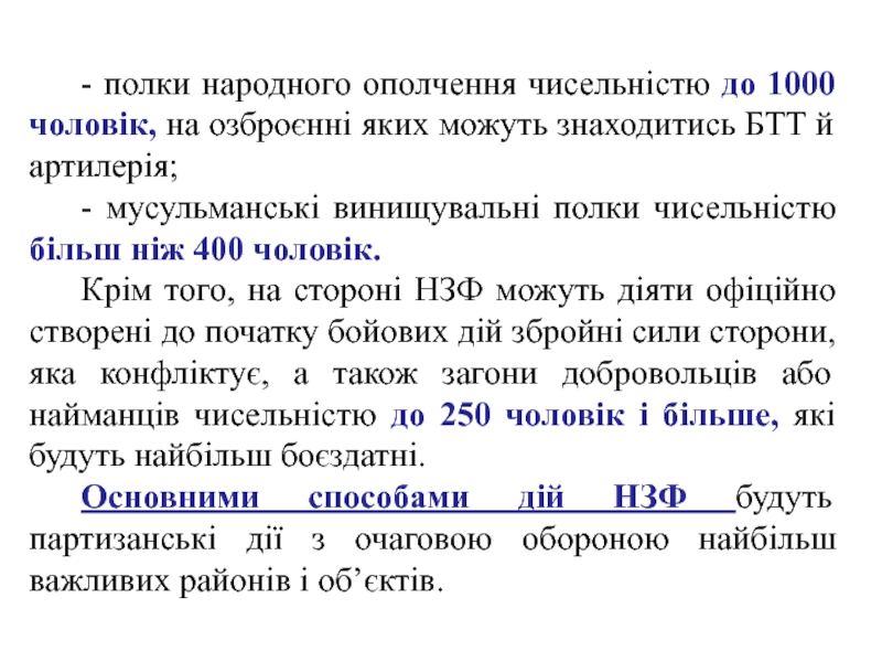 Слайд 21- полки народного ополчення чисельністю до 1000 чоловік, на озброєнні