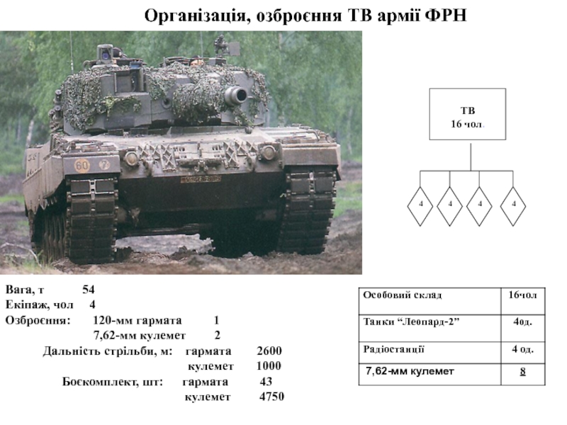 Слайд 8Організація, озброєння ТВ армії ФРН