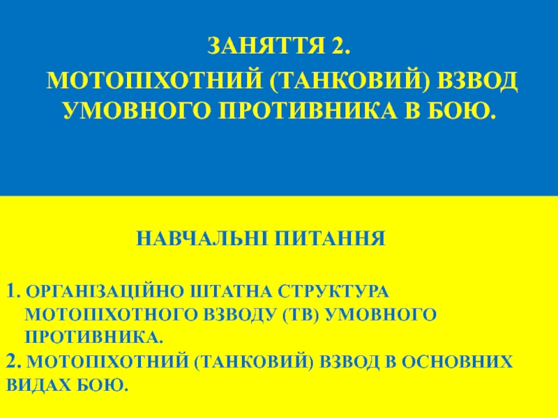 МОТОПІХОТНИЙ (ТАНКОВИЙ) ВЗВОД УМОВНОГО ПРОТИВНИКА В БОЮ.