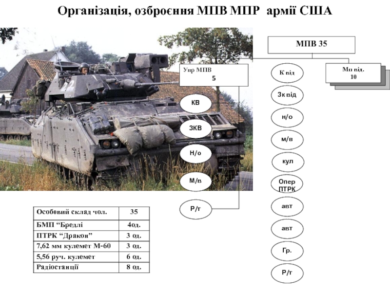 Слайд 4Організація, озброєння МПВ МПР армії США