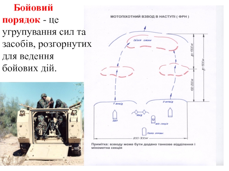 Слайд 12Бойовий порядок - це угрупування сил та засобів, розгорнутих для