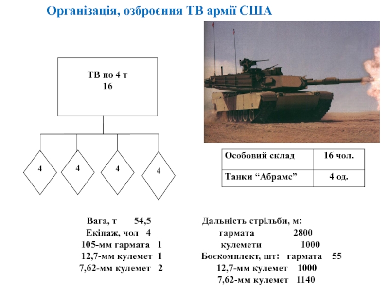 Слайд 5Організація, озброєння ТВ армії США