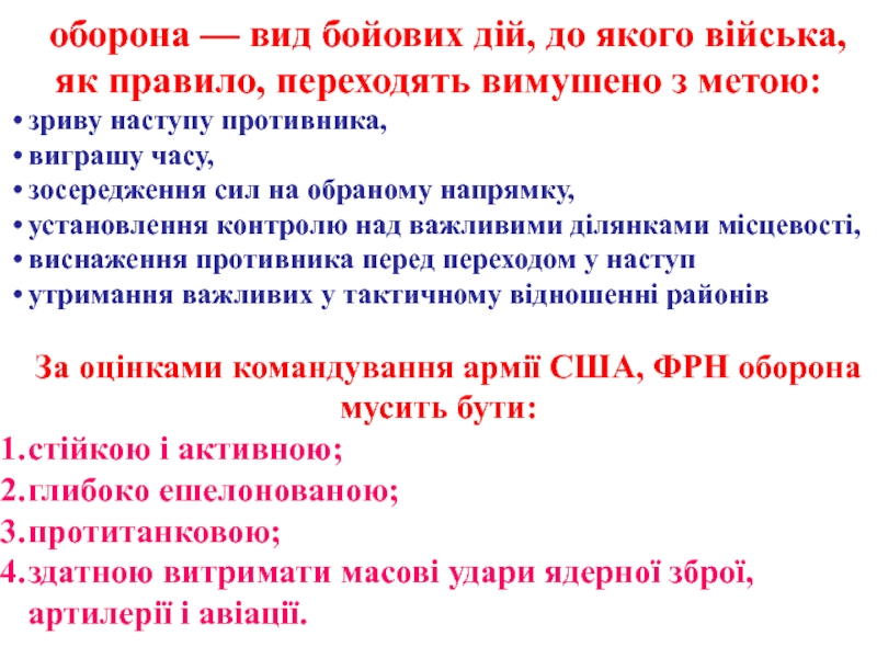 Слайд 13оборона — вид бойових дій, до якого війська, як правило,