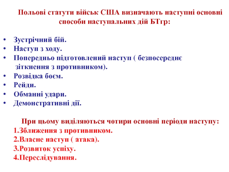 Слайд 9Польові статути військ США визначають наступні основні способи наступальних дій