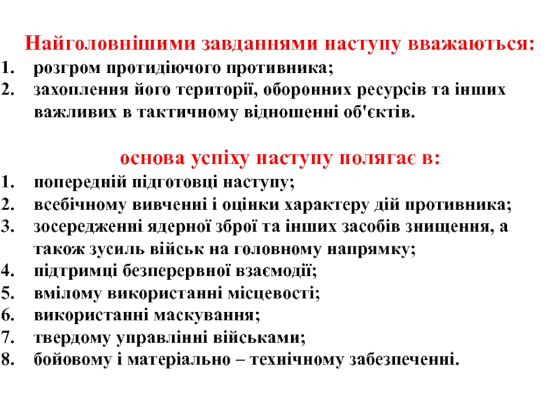 основа успіху наступу полягає
