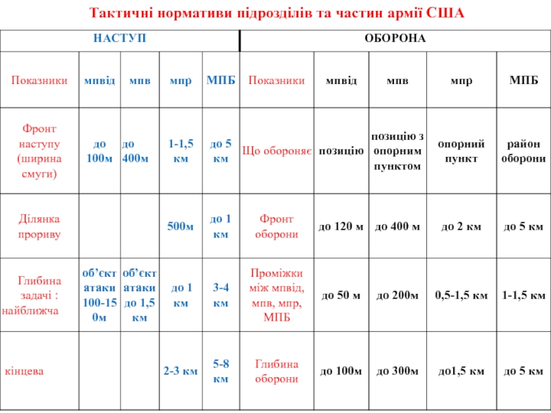 Слайд 18Тактичні нормативи підрозділів та частин армії США