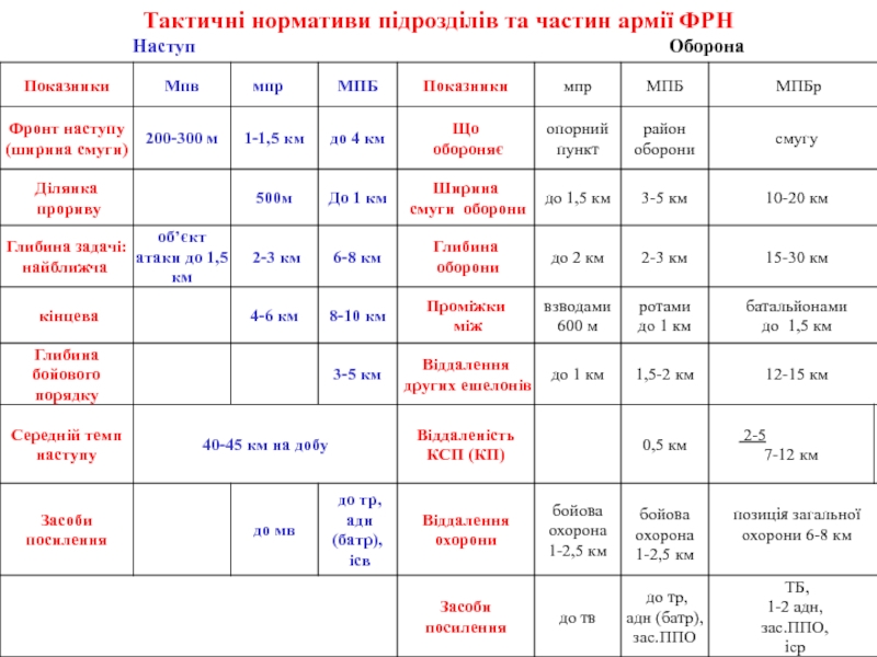 Слайд 19Тактичні нормативи підрозділів та частин армії ФРН