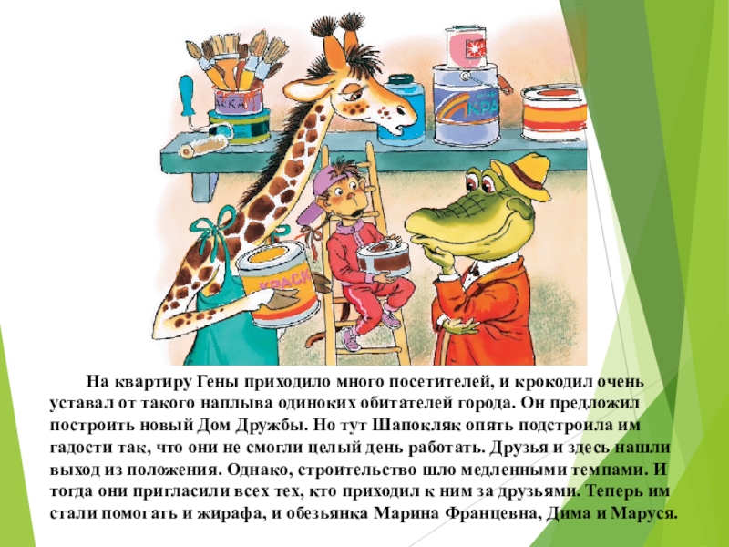 Слайд 10 На квартиру Гены приходило много посетителей, и крокодил очень уставал