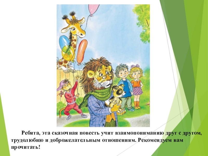 Слайд 12 Ребята, эта сказочная повесть учит взаимопониманию друг с другом, трудолюбию