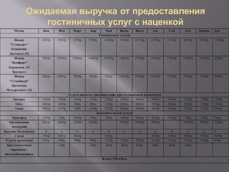 Ожидаемая выручка от предоставления гостиничных услуг с наценкой