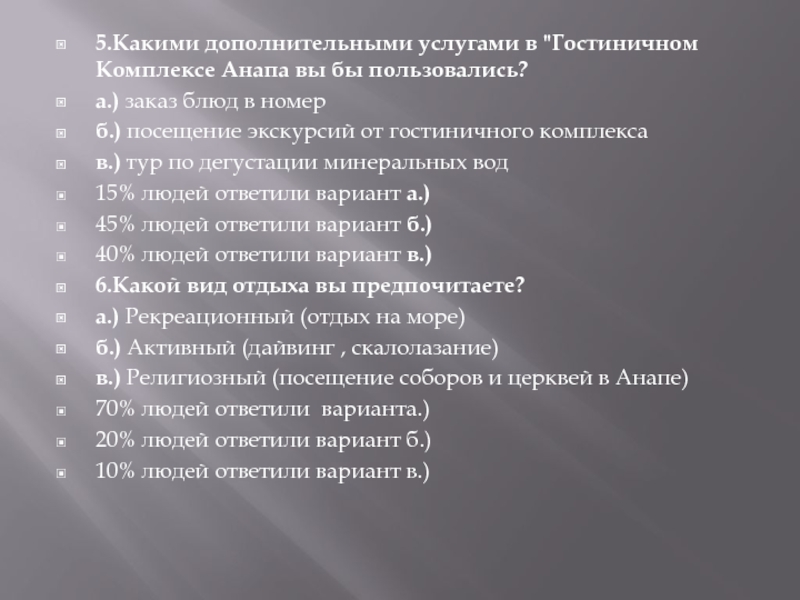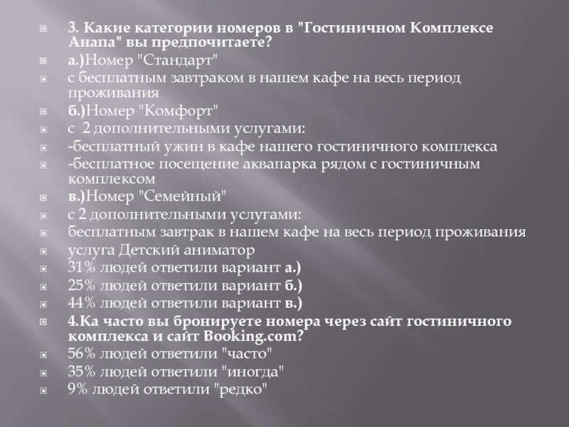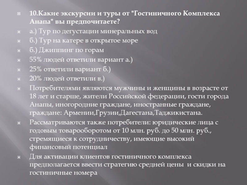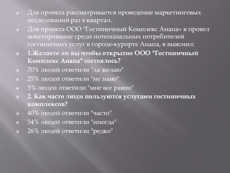 проекта ООО "Гостиничный Комплекс Анапа« я провел анкетирование среди потенциальных