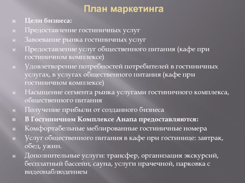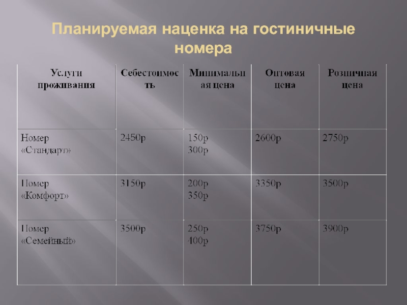 Слайд 4Планируется предоставление следующих гостиничных услуг