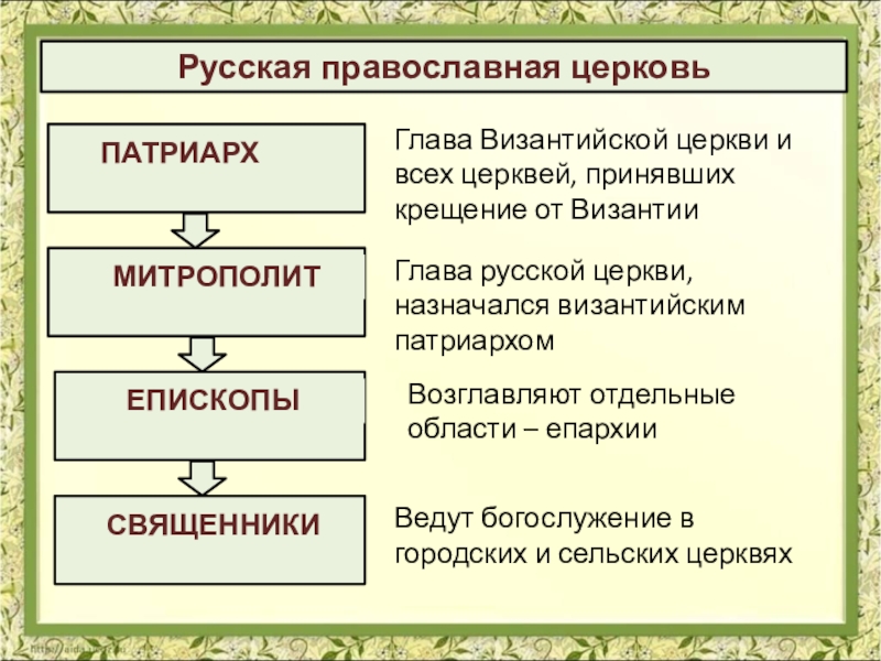 епархии. Во главе епархии стояли епископы, которым подчинялись все приходские священники округа.Православный храм 12 века
