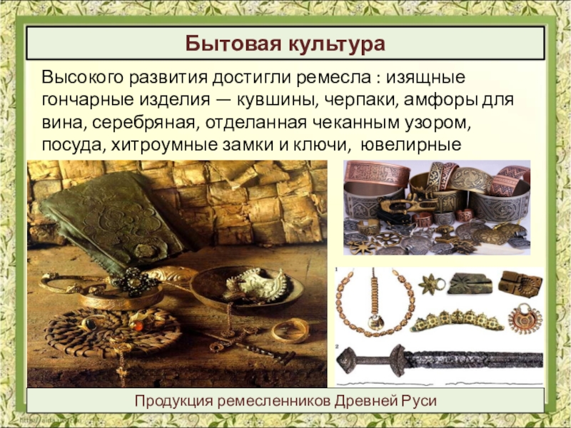 Продукция ремесленников Древней Руси