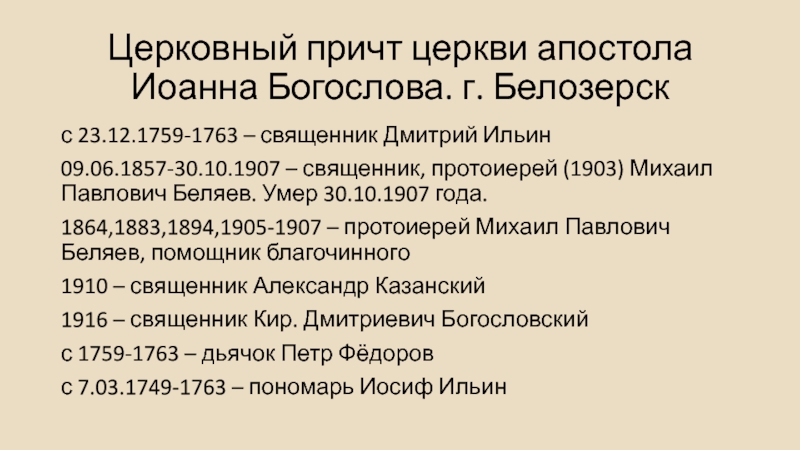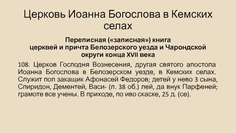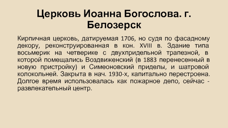 16: 2) О трех престолах: настоящий – апостолу евангелисту Иоанну Богослову; придельные – Воздвижению Честнаго Креста Господня и Преподобному Семиону Столпнику.