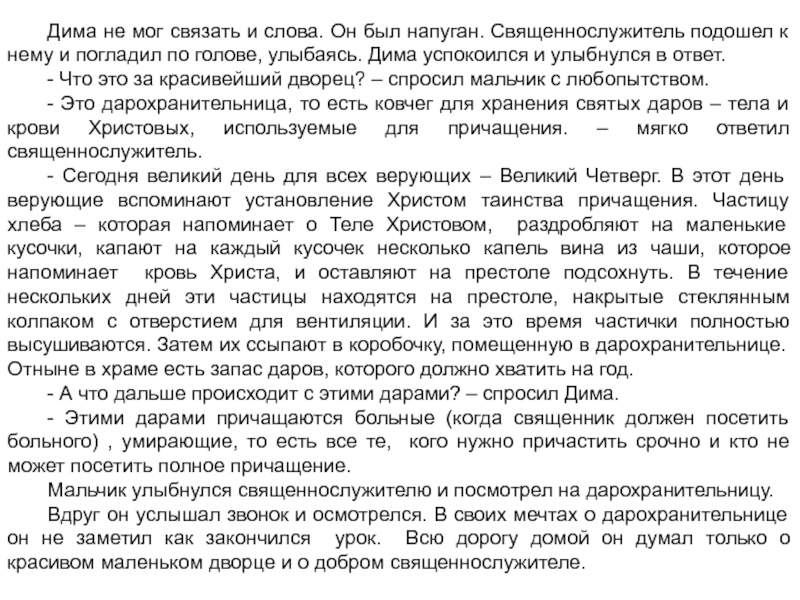 Слайд 9 Дима не мог связать и слова. Он был напуган. Священнослужитель