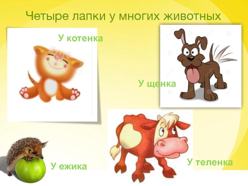 Слайд 8Четыре лапки у многих животных