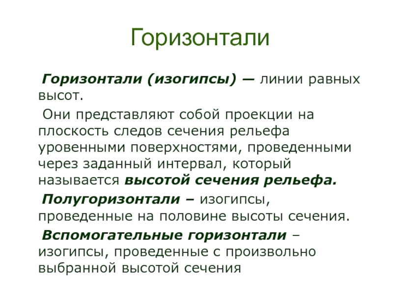 Они представляют собой проекции на плоскость следов сечения рельефа уровенными