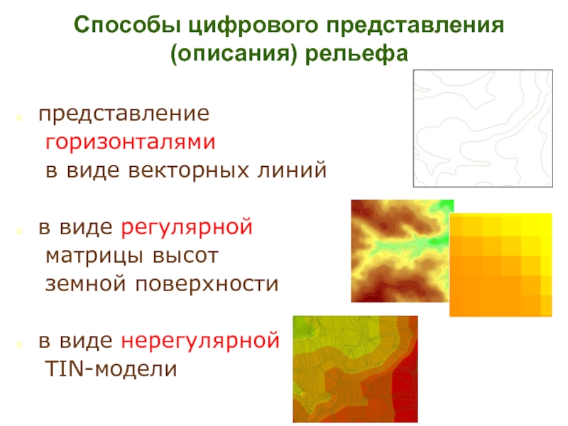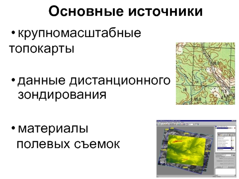 Слайд 34Информационное обеспечение цифрового моделирования рельефа.