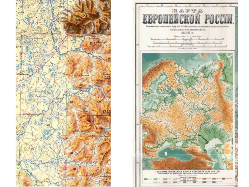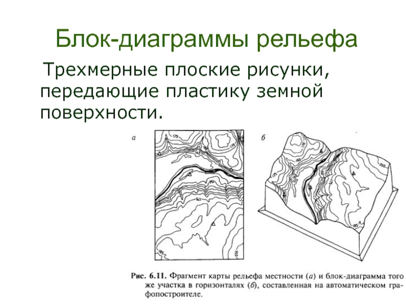 Трехмерные плоские рисунки, передающие пластику земной поверхности.