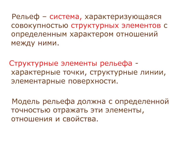 Рельеф – система, характеризующаяся совокупностью структурных элементов с