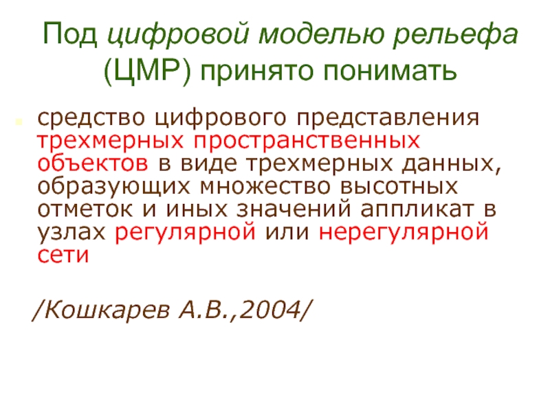 Слайд 22Под цифровой моделью рельефа (ЦМР) принято понимать