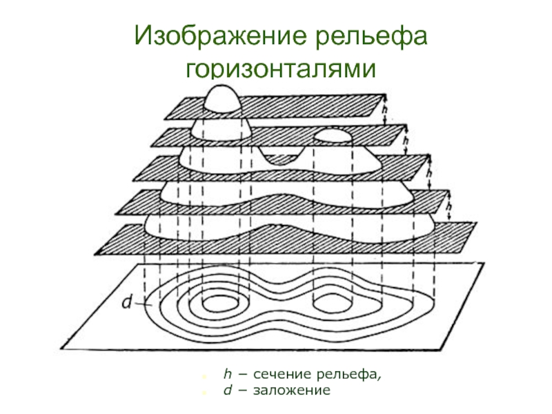 поверхностями, проведенными через заданный интервал, который называется высотой сечения рельефа.