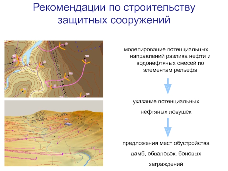 Слайд 52моделирование потенциальных направлений разлива нефти и водонефтяных смесей по элементам