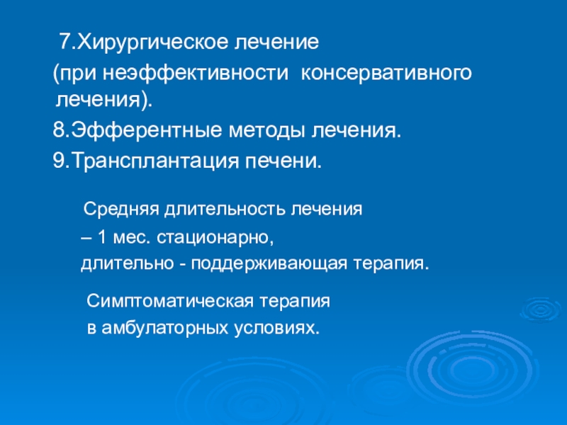 7. синдрома большой печеночной недостаточности (печеночная энцефалопатия, кома) в терминальной стадии;