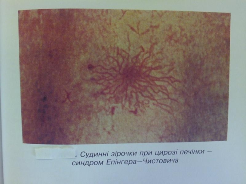 (телеангиоэктазии, пальмарная эритема, нарушение метаболизма лекарств, гормональные нарушения: импотенция, гинекомастия