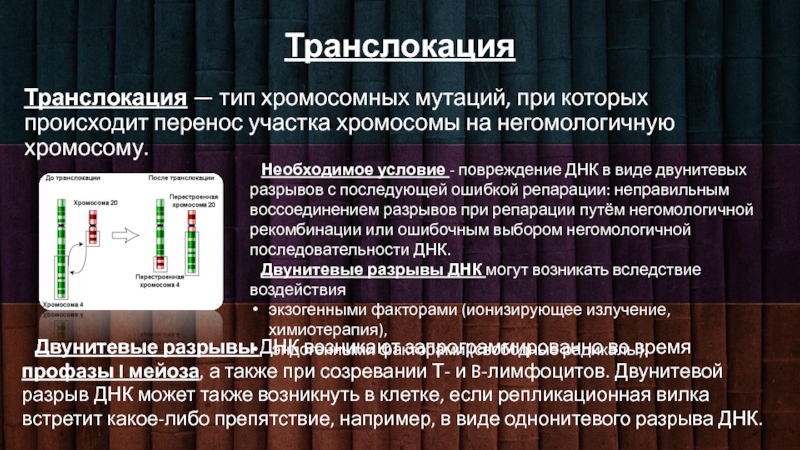 Различные транслокации в соматических клетках приводят к развитию лимфом, сарком, лейкозов.