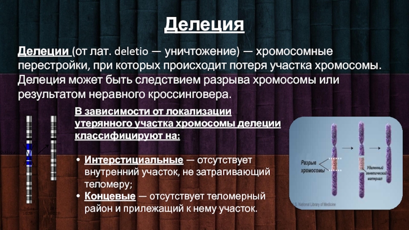 В зависимости от локализации утерянного участка хромосомы делеции классифицируют на: