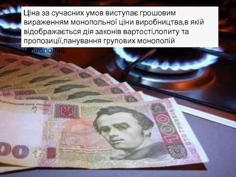 Слайд 6Ціна за сучасних умов виступає грошовим вираженням монопольної ціни виробництва,в