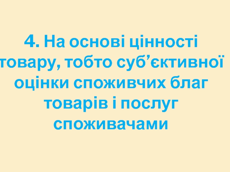 Слайд 304. На основі цінності товару, тобто суб’єктивної оцінки споживчих благ