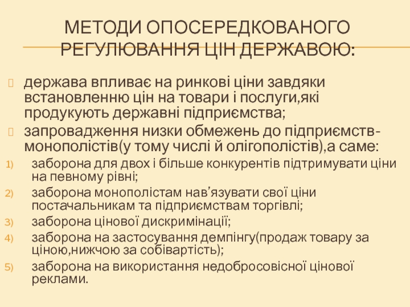 Слайд 20Участь у процесі ціноутворення уряду полягає у встановленні фіксованих цін,
