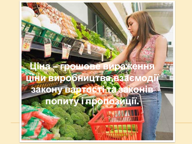 Ціна – грошове вираження ціни виробництва,взаємодії закону вартості та законів попиту і пропозиції.