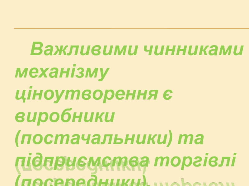 Слайд 32 Важливими чинниками механізму ціноутворення є виробники(постачальники) та підприємства