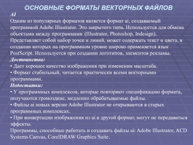 Слайд 19ОСНОВНЫЕ ФОРМАТЫ ВЕКТОРНЫХ ФАЙЛОВ