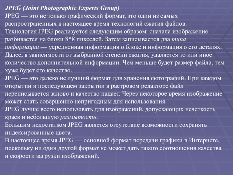 Слайд 16JPEG (Joint Photographic Experts Group)