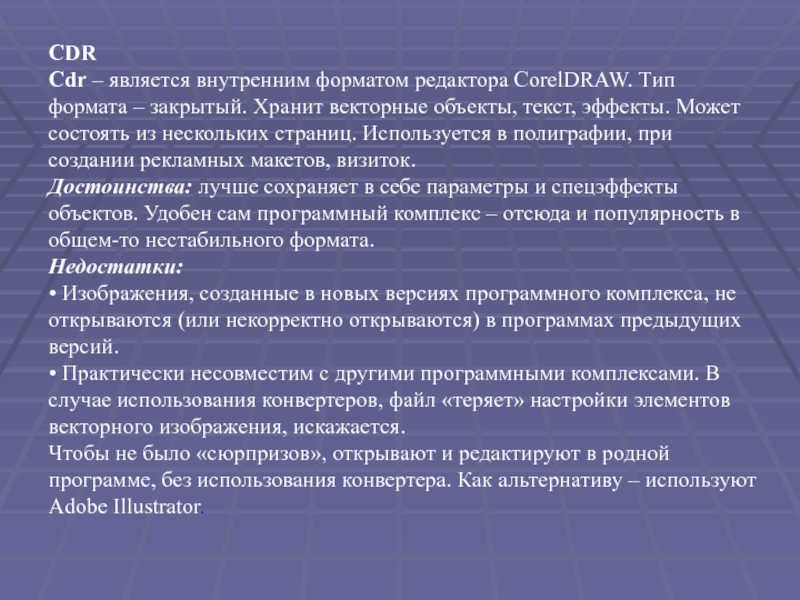 Cdr – является внутренним форматом редактора CorelDRAW. Тип формата – закрытый.