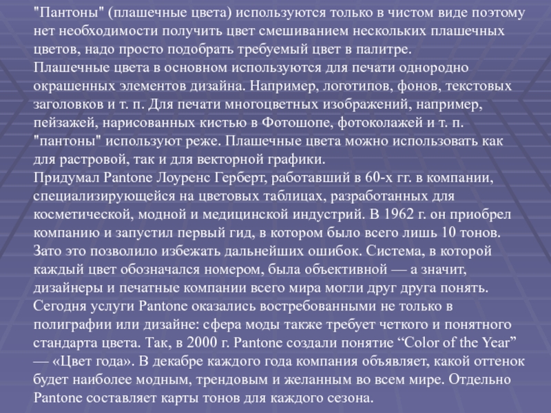 Слайд 12"Пантоны" (плашечные цвета) используются только в чистом виде поэтому нет