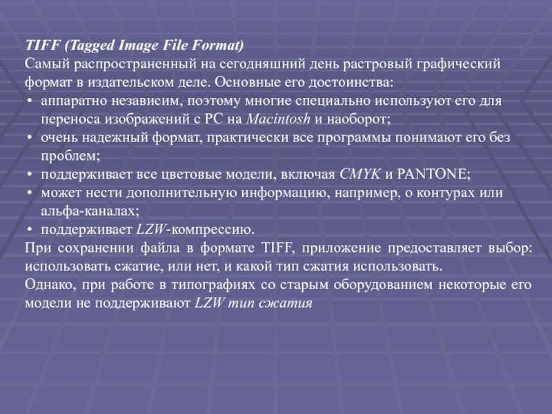 Однако, при работе в типографиях со старым оборудованием некоторые его модели не поддерживают LZW тип сжатия