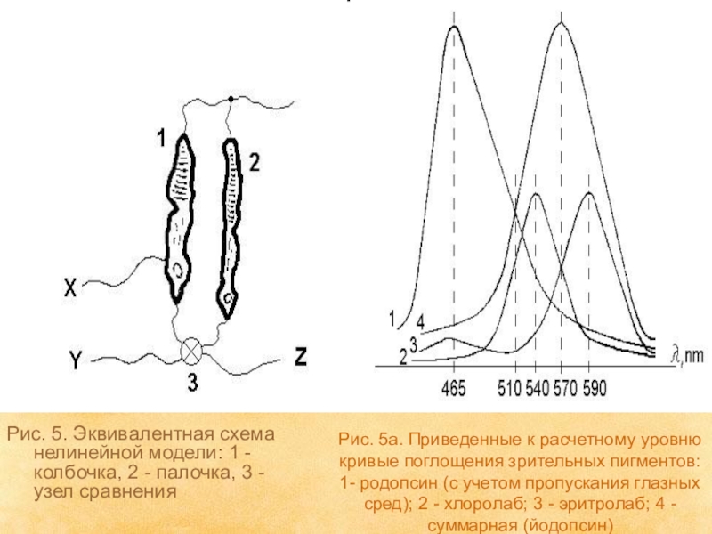 Рис. 5. Эквивалентная схема нелинейной модели: 1 - колбочка, 2 - палочка, 3 - узел сравнения
